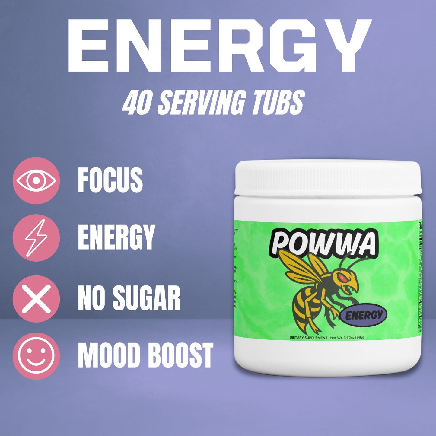 POWWA is a clean energy drink powder made to boost your focus, energy, and mood — without sugar or crash. Just mix it with water and feel the difference in minutes.